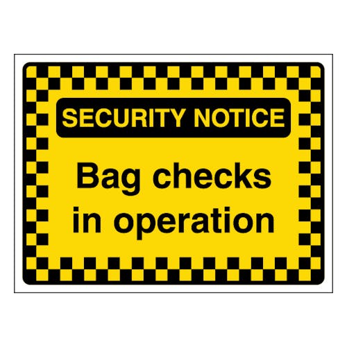 Display clear Security Notice signs to reinforce bag and item check policies, prevent disputes, and ensure smooth entry to your premises